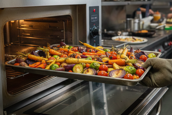 O ciclo de convecção depois pode até intensificar essas cores ao concentrar os pigmentos através da desidratação superficial. O apelo visual do prato aumenta muito quando os legumes têm cores vivas e brilhantes.